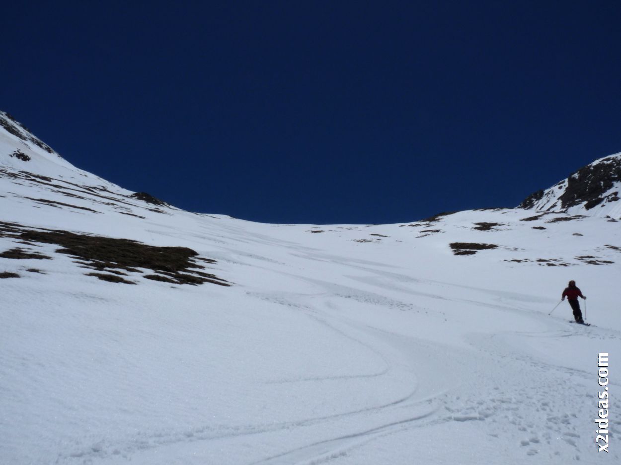 Después de dos días de lluvias, esta noche entrada de viento de norte, pero sol, vamos a darnos el gustazo de probar de nuevo, repetimos Lucas y yo, nos acompaña una pareja amiga de Lucas que creo que se lo han pasado igual de bien que nosotros. Entrada por el bosque antes de la captación de agua de Ardonés, un poco roto y durito, sirve para entrar en calor con los zig-zags, subimos la primera meseta y vemos mejor calidad de nieve y en la segunda todavía no transformada nos deja deslizar rápidamente hasta la cima del pico Castanesa, el otro día con nieve recién caída tardamos casi una hora más ( eh!! Blanca ). Arriba viento y frío pero en la bajada hemos podido disfrutar de la nieve primavera de mejor calidad.