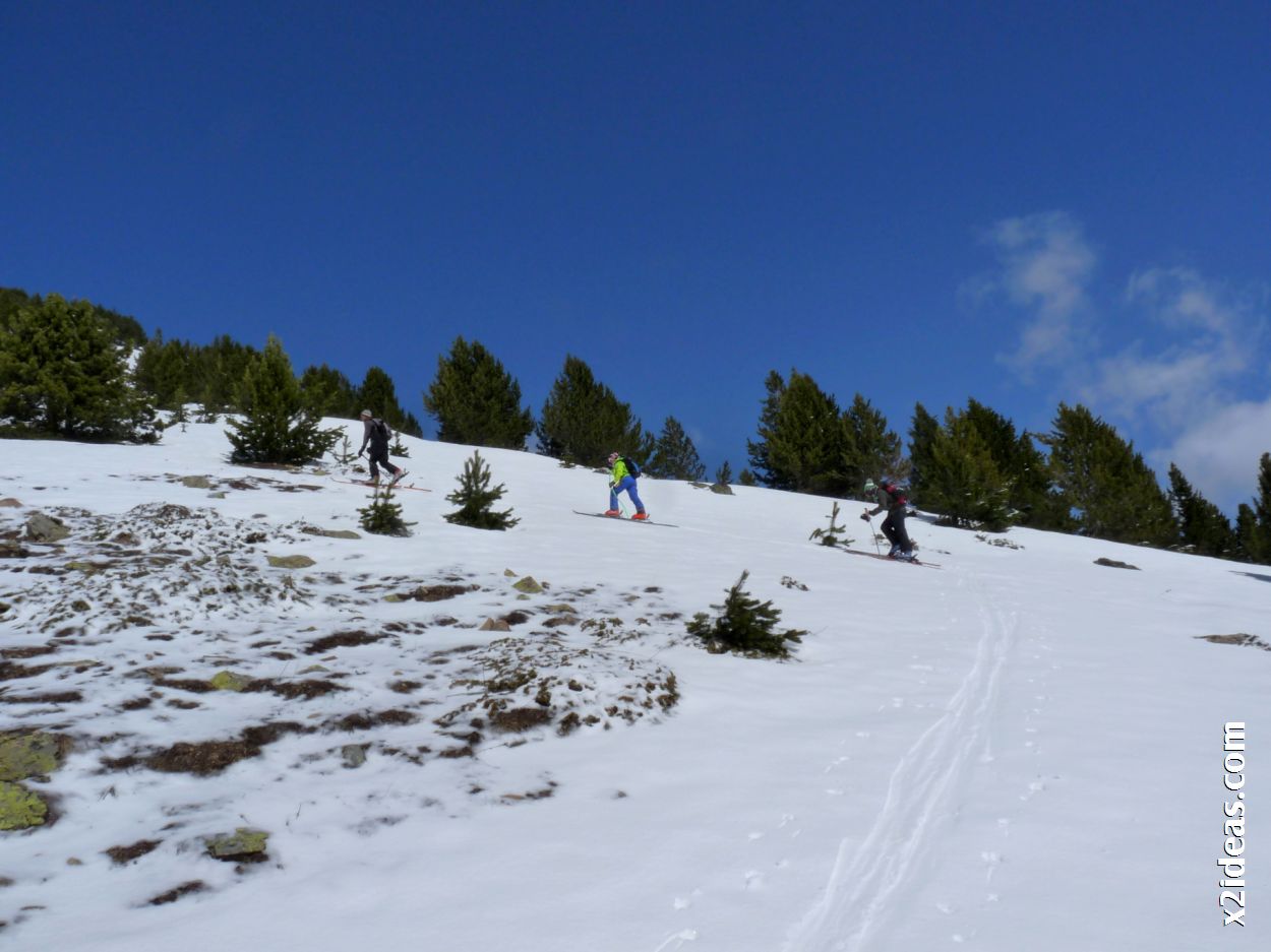 Mañana fresquita después de la nevada de ayer, viento de norte aflojando, trazando la subida por Ampriu y enseguida entramos en la planicie que hay entre las pistas de la Olla y la Solana, engañados por la vista desde el parking donde no veíamos la posibilidad de encontrar nieve, la grata sorpresa ha sido encontrar una buena pala cerca de los árboles, por donde hemos subido y bajado, los deditos nuevos de nieve más la temperatura nos ha hecho disfrutar la bajada continuada hasta el telesilla Ampriu (el del Amor).