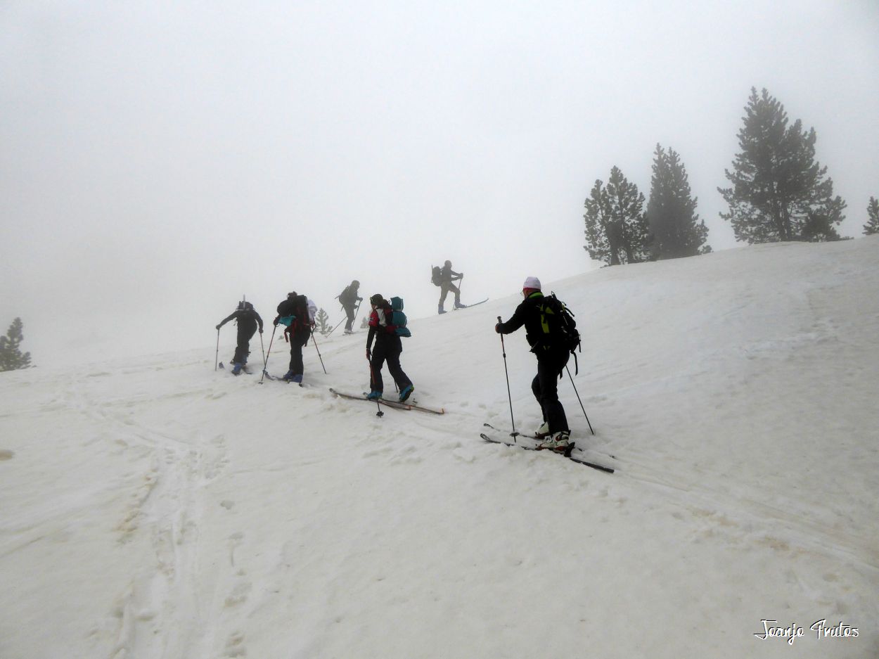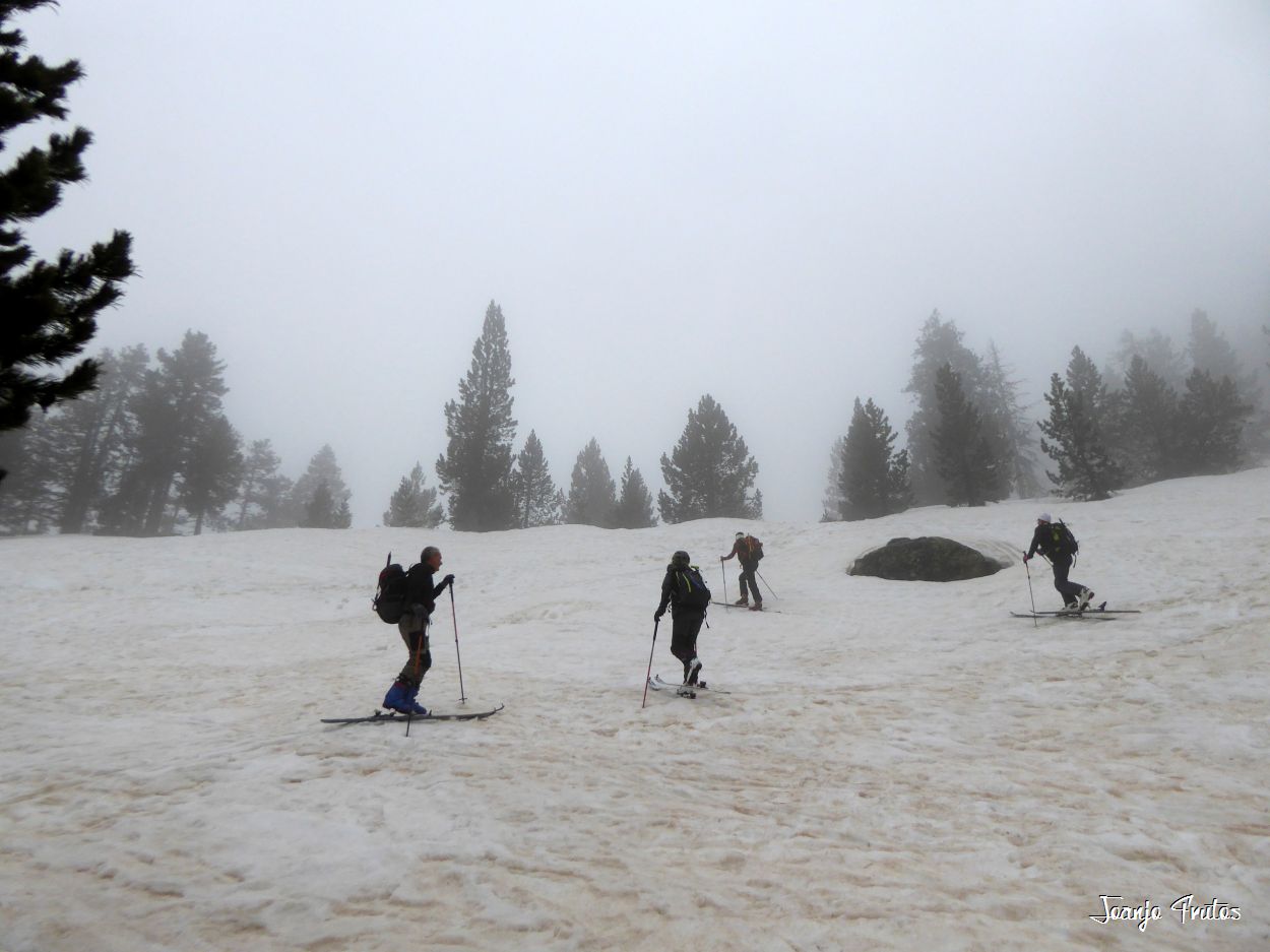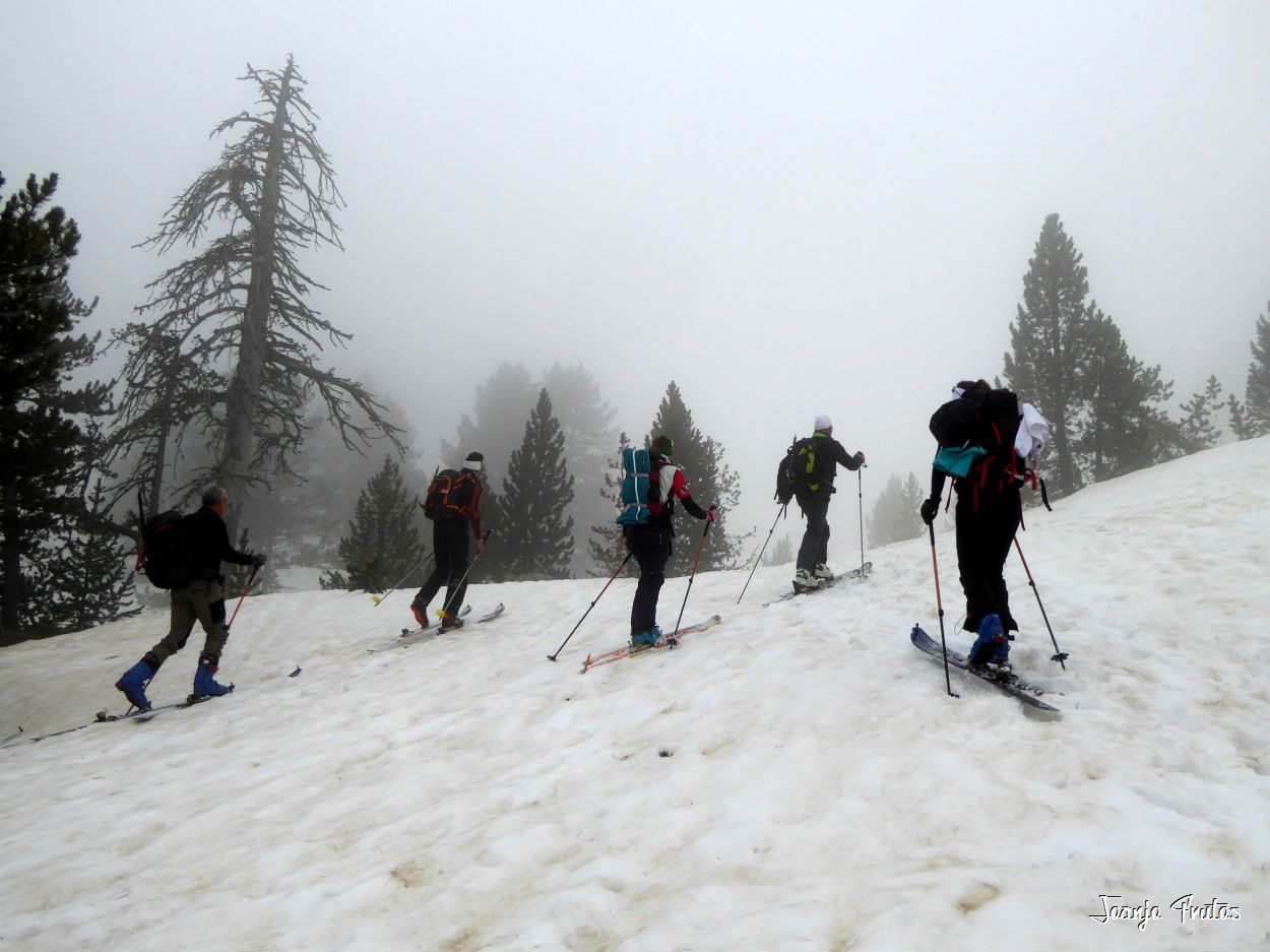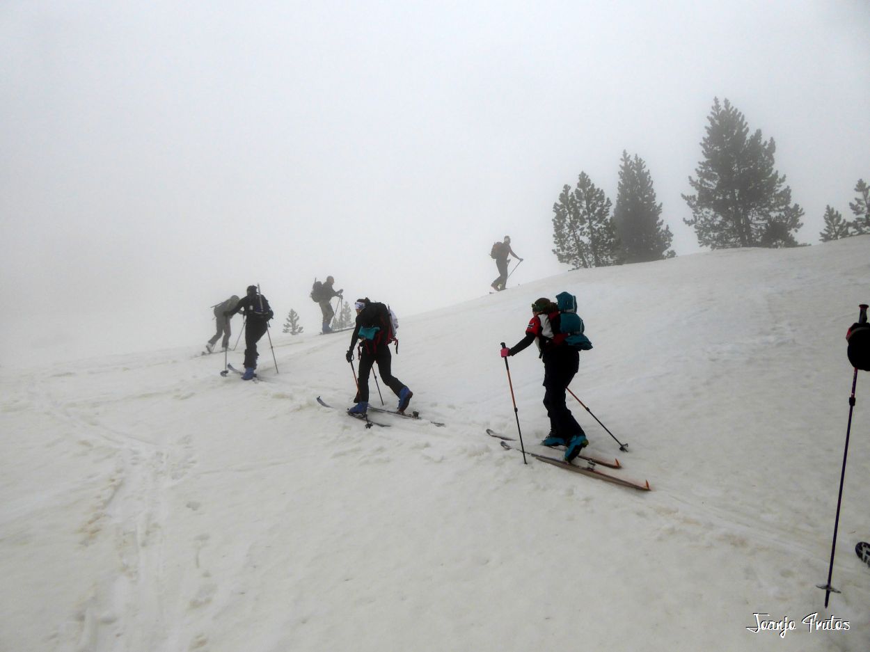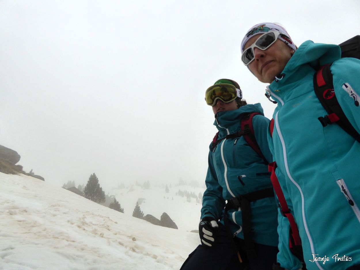 Tal y como amanecía hoy el día lo mejor era volver a la cama, pero la aventura es la aventura y la niebla me gusta y si es con nieve «podridilla» todavía más. Los compañeros merecían que no les dejara solos, mi sombra y yo, buscamos a Lucas y luego nos encontramos con el grupo de Chemari, Bea, Alva, Fran y Salva.