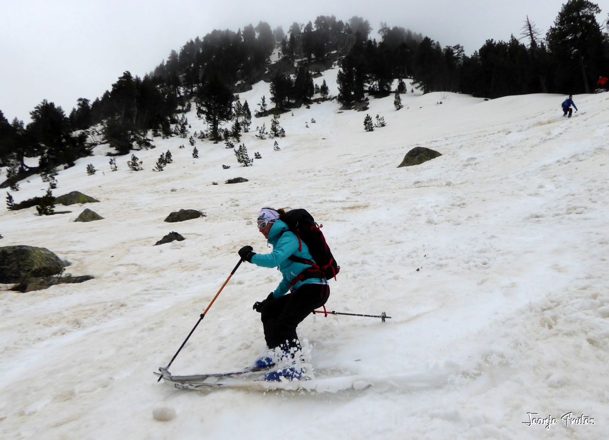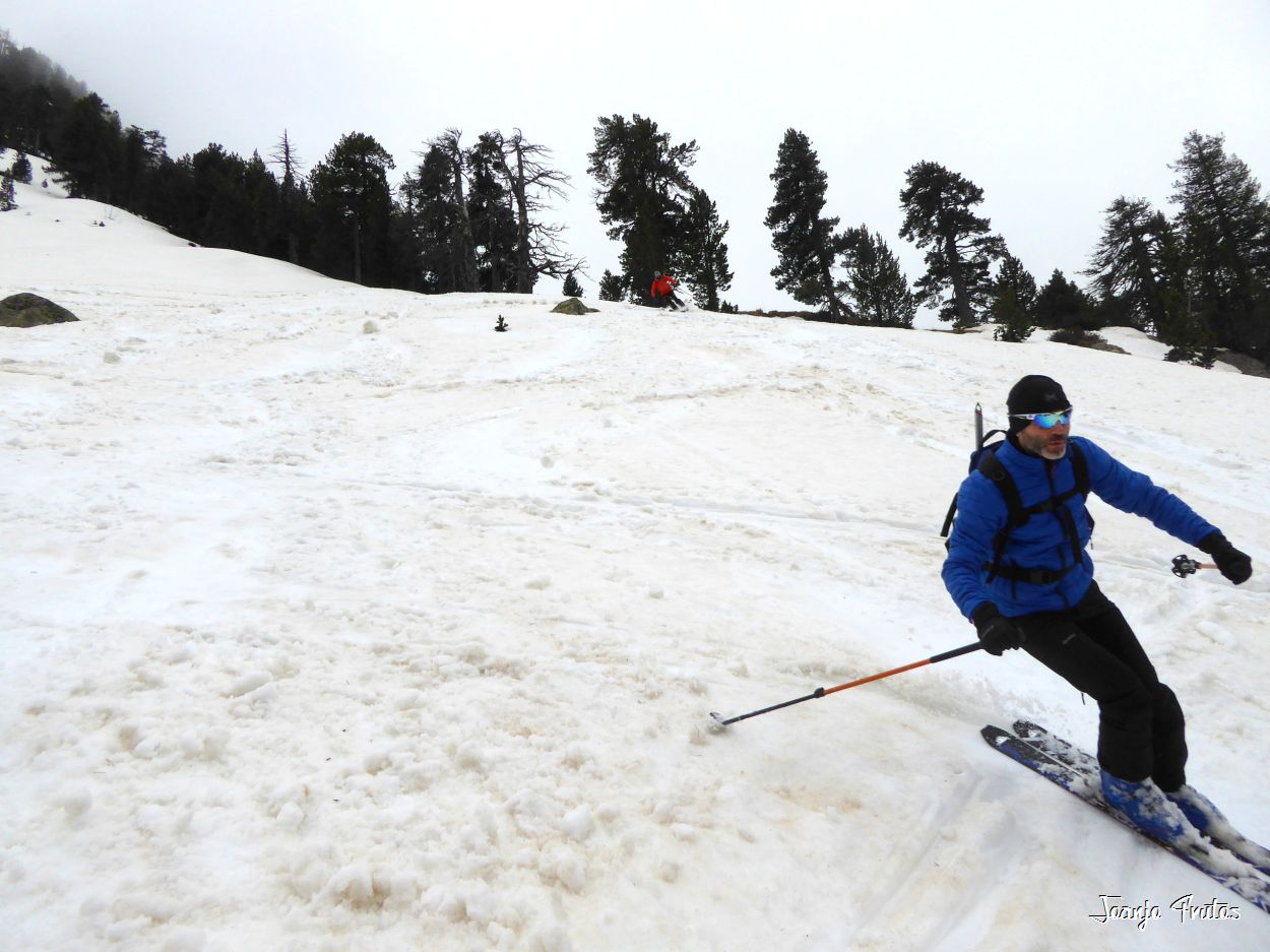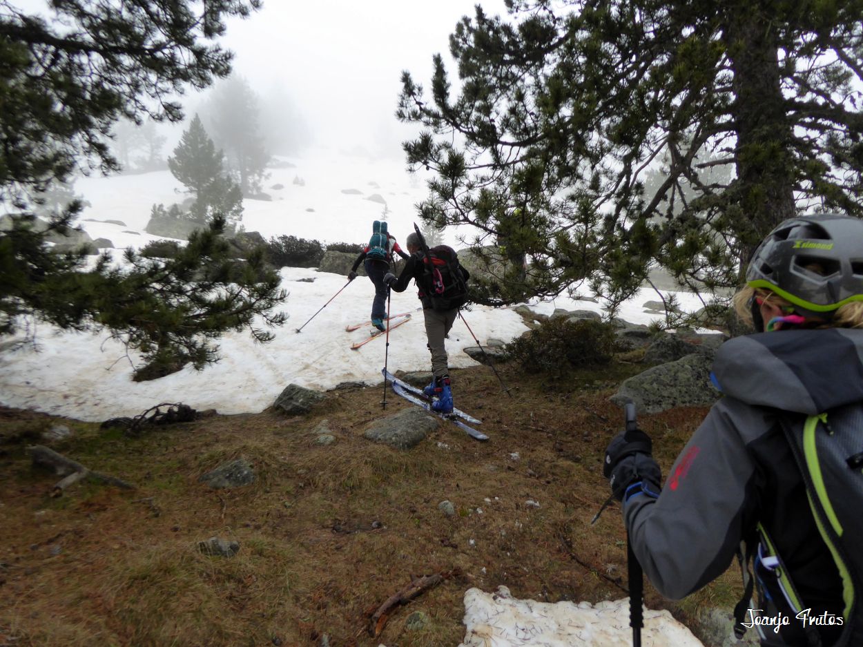 Y hasta aquí hemos podido bajar con esquís puestos, mañana igual seguimos o no.