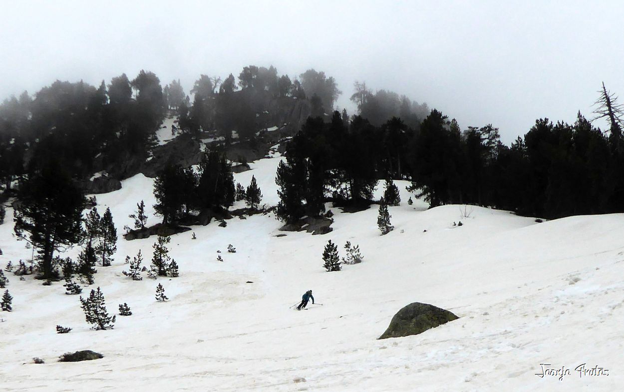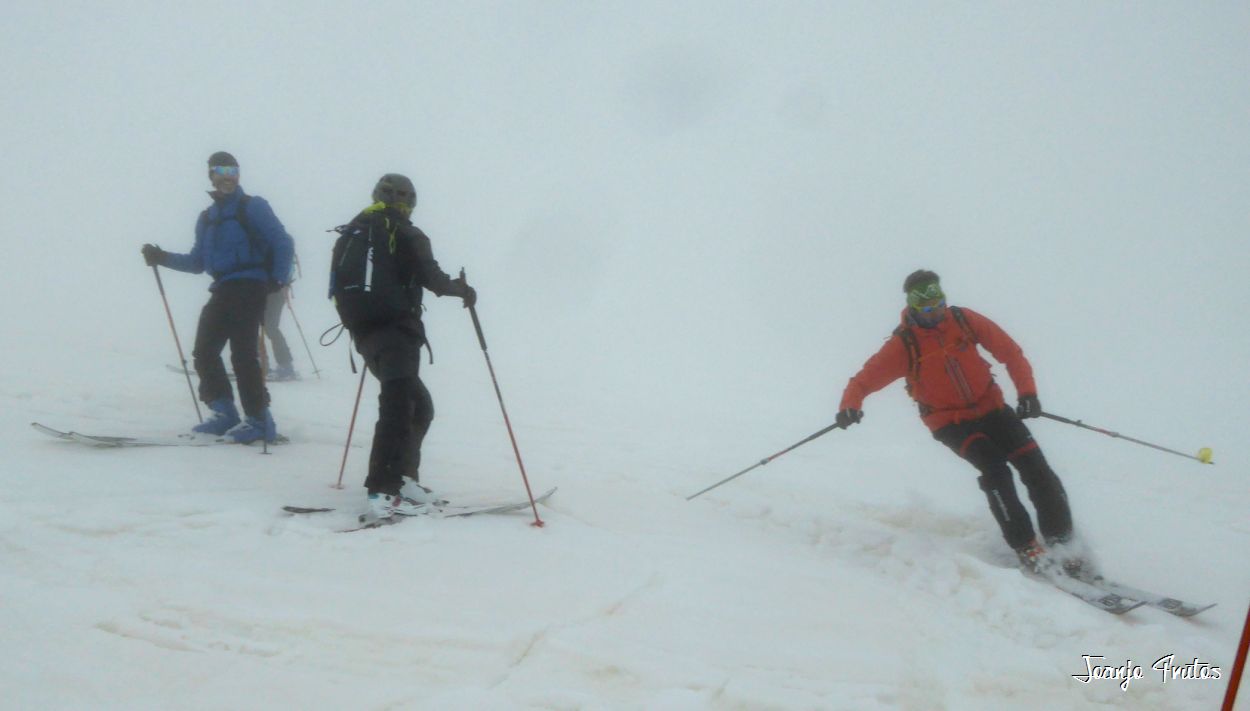 | Hay que intuir por donde bajar, la niebla no deja encadenar más de cinco giros. |