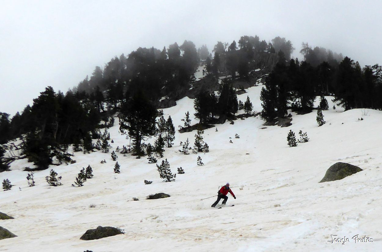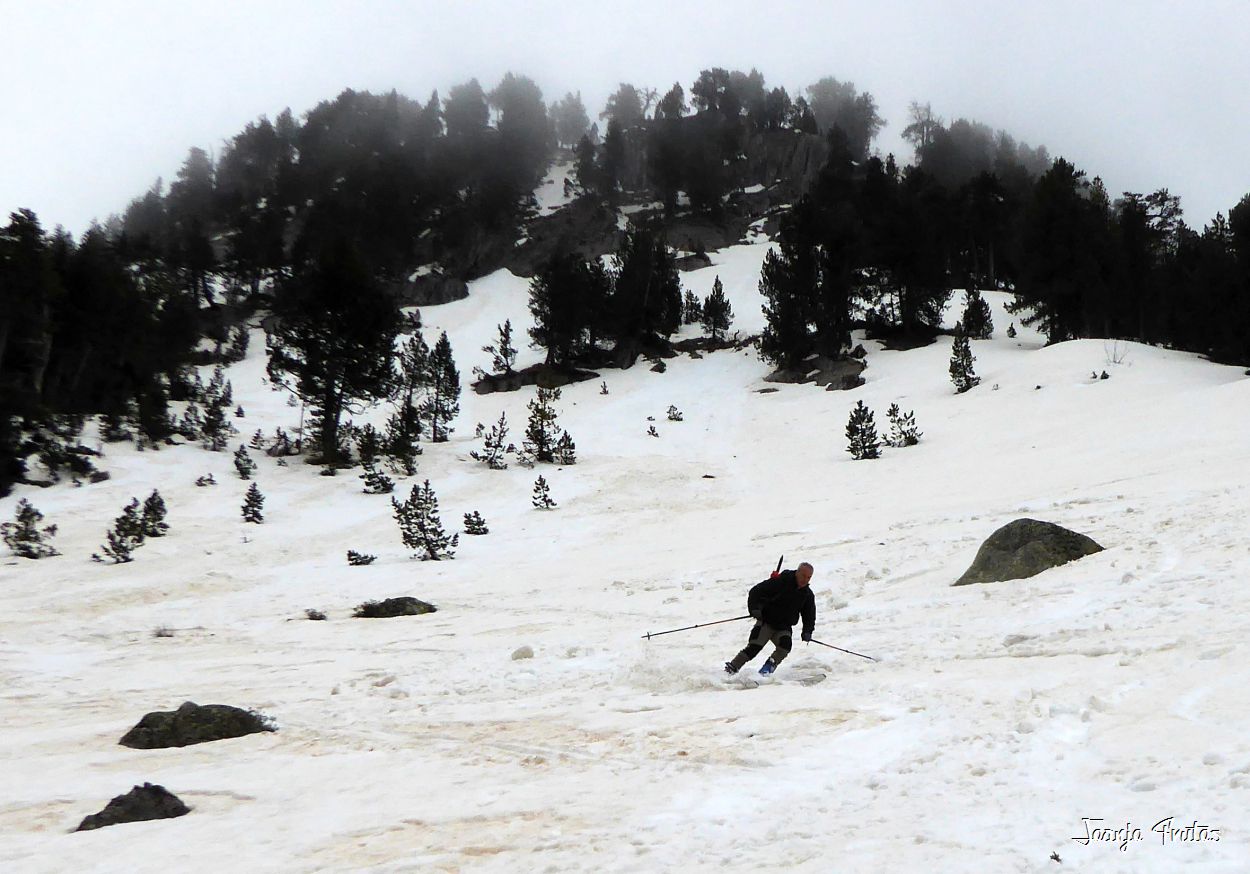 | Iniciamos la bajada desde la «Popetas», total para no ver. |