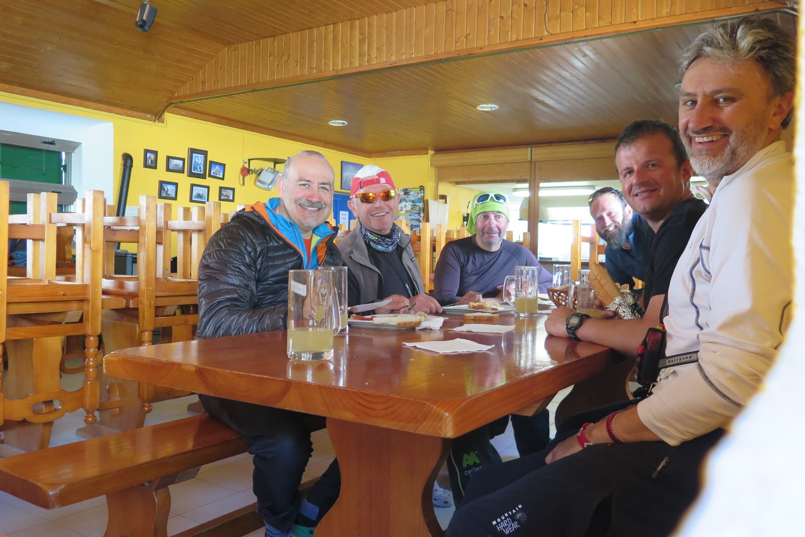 Risas y cervezas y dándonos cuenta que el material que hemos abandonado en el coche, al final nos hubiera ido de vicio para realizar la bajada un poco más segura.