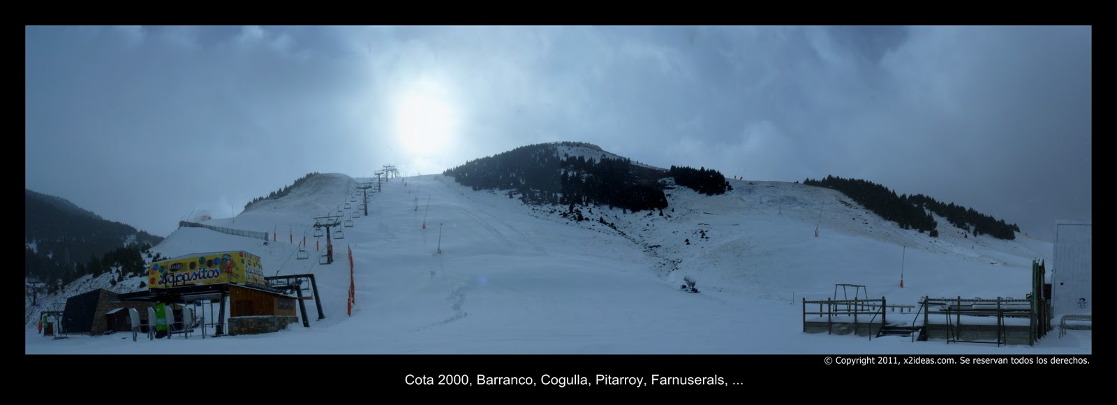 Antes de que la apertura del sector Cogulla se me adelante, he estado disfrutando en solitario de la bajada desde Colladeta a Cota 2000 por Barranco y posteriormente hasta el telesilla de Robellons, donde me he descalzado y he seguido andando hasta el cruce de la carretera de Ampriu con el Solano.