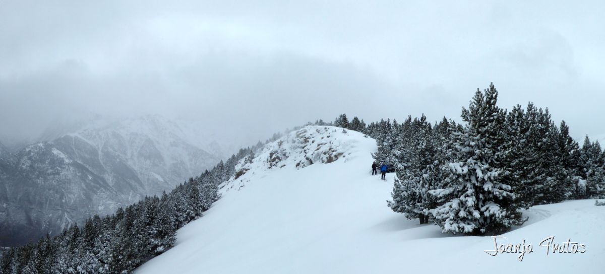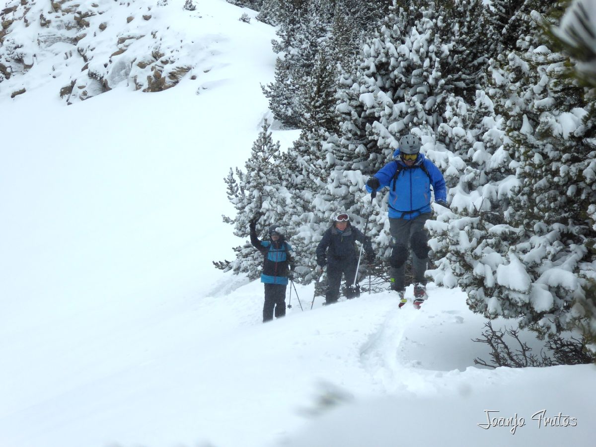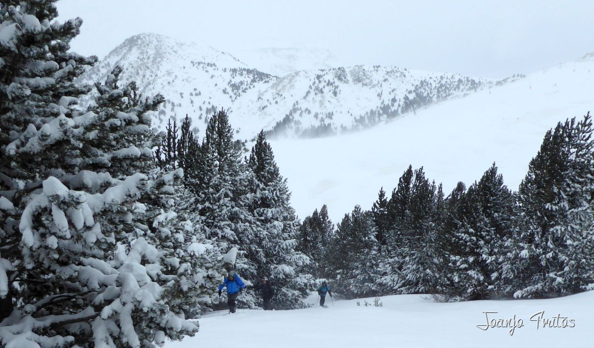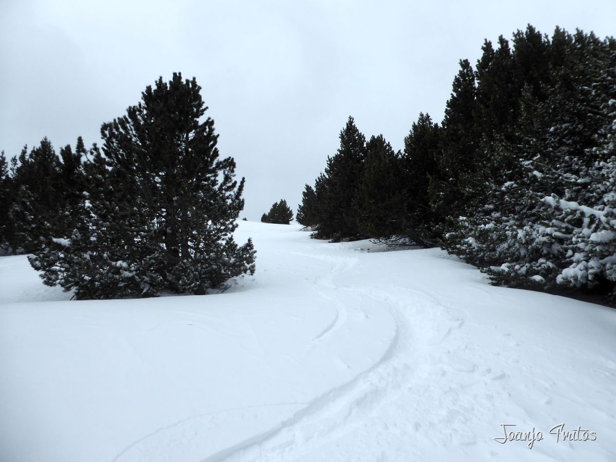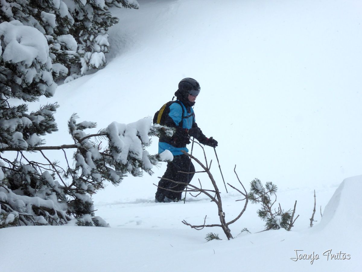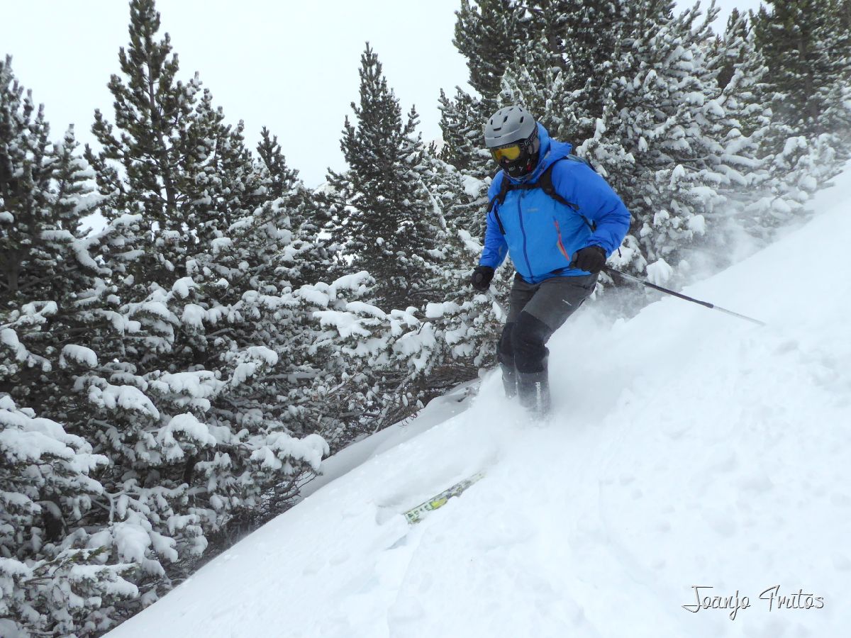 El despertar ha sido alentador nevada hasta las partes bajas del Valle, cumbres ventadas, siempre podremos esquiar en las zonas medias y más resguardadas, como siempre aconsejo estos días es venir preparados con los esquís de travesía y cuando has realizado unas cuantas bajadas y antes de tener síndrome de hanster, es cuando hay que calzar las focas a los esquís y explorar un poco, recomiendo bosques por la visibilidad y el resguardo que dan, no nos hemos equivocado, bonita subida y buena bajada abriendo huella con unos amigos a los que les he hecho sufrir subiendo por el laberinto de pinos hasta lo alto de La Rabosa.