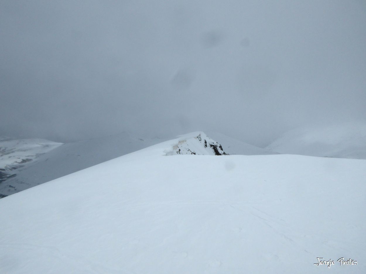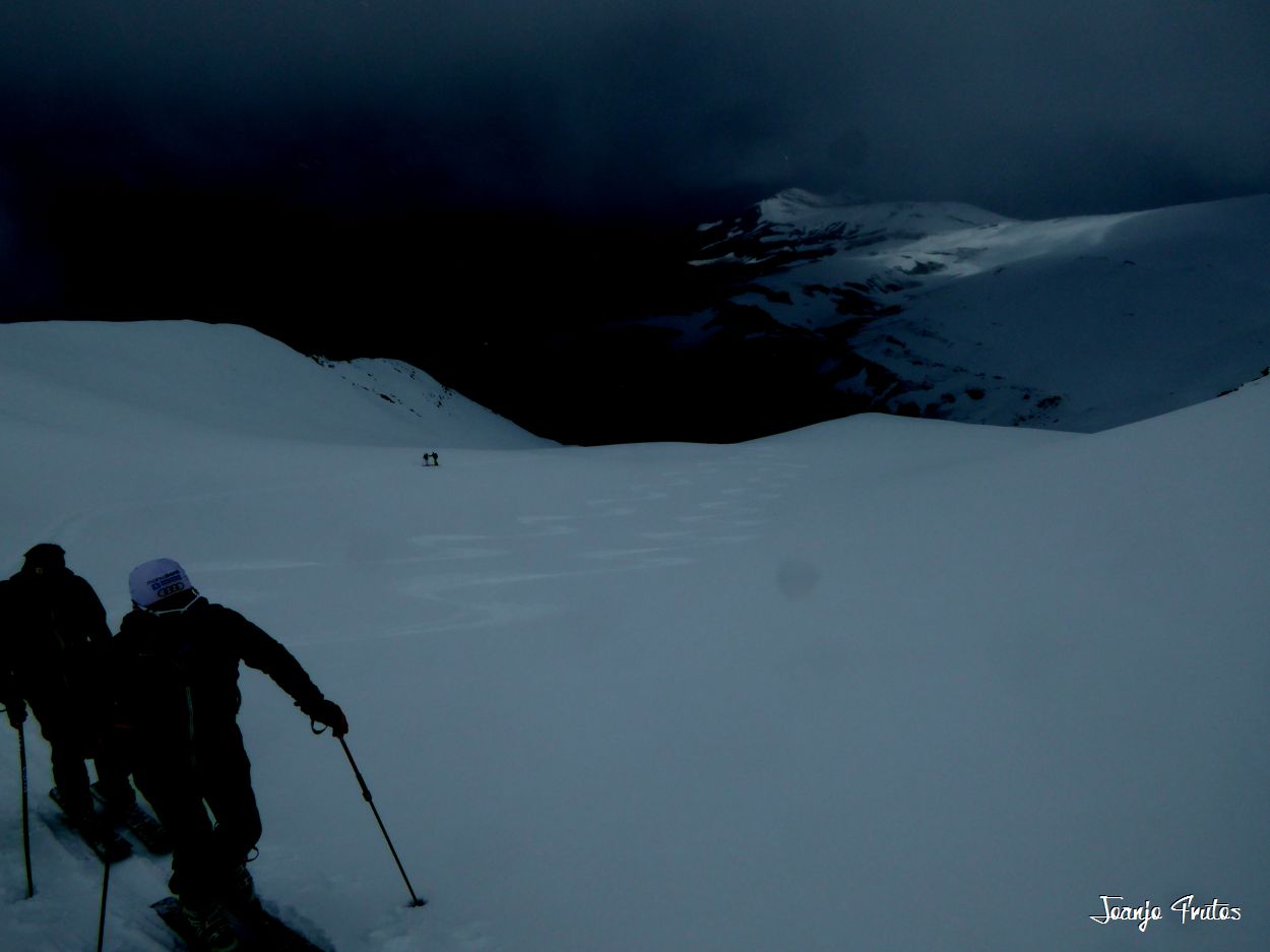 | Y ahora sí, todos los que hemos llegado, nevando y esperando visibilidad. |