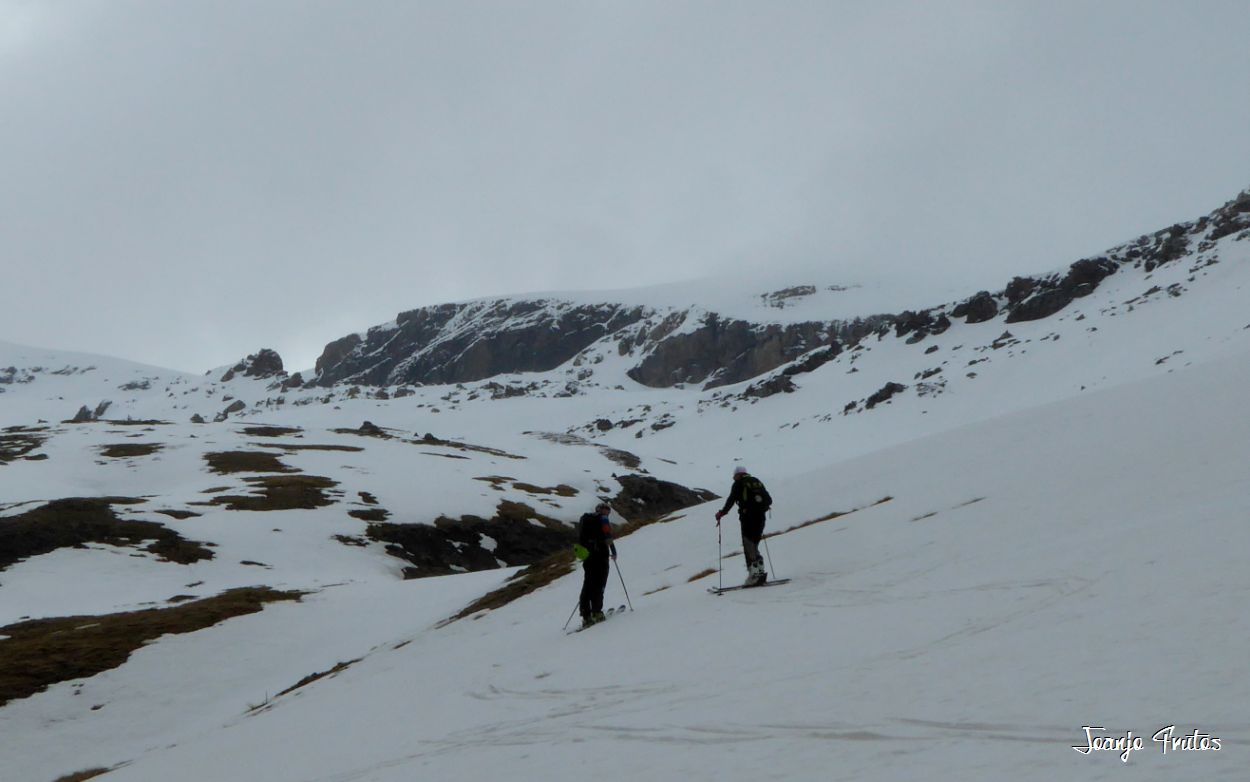Porteo de media hora y contacto con la nieve, lo único que rompía el paisaje era ver continuamente las huellas que alguien hizo ayer, jeje.