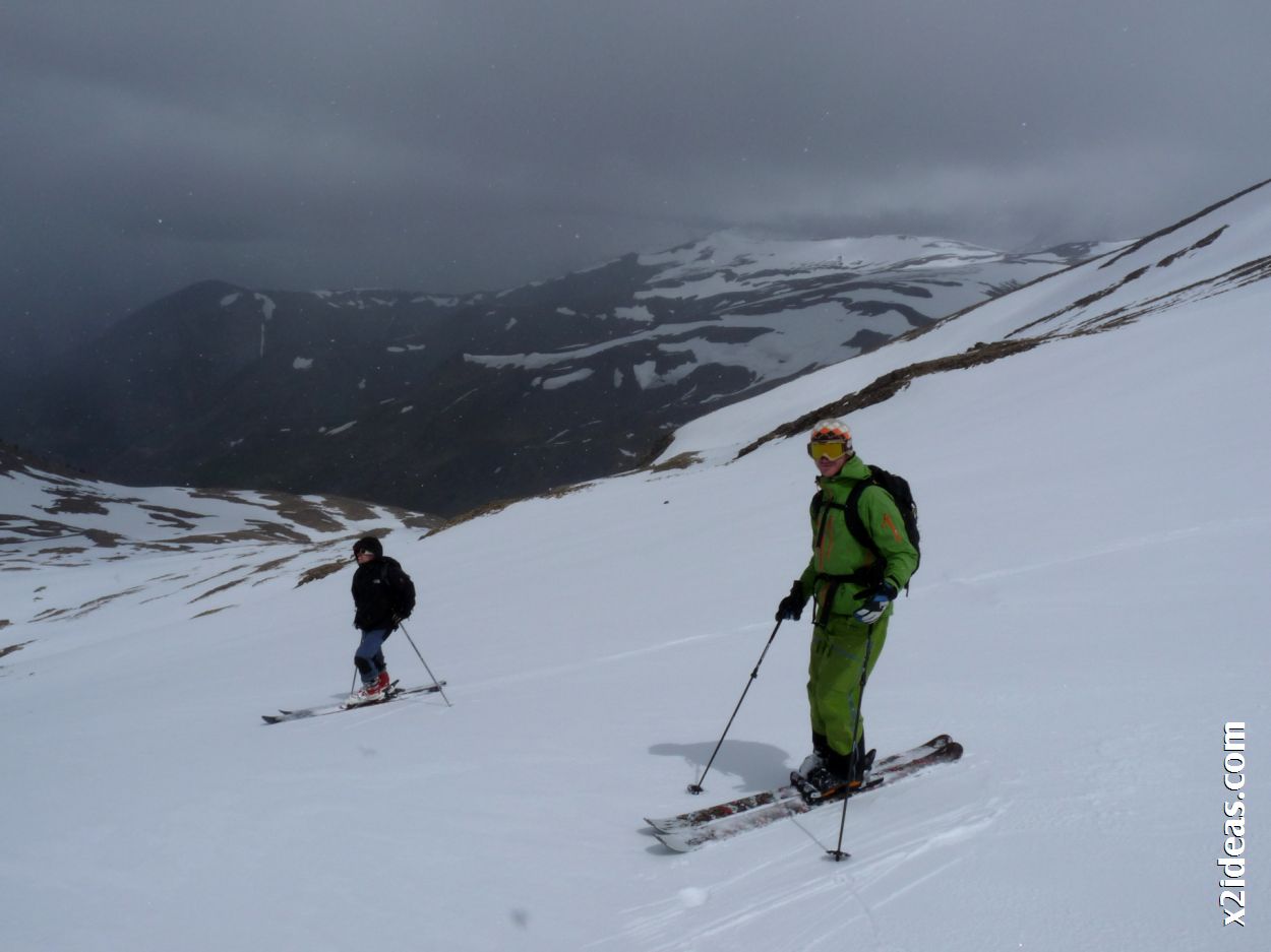 Estamos a dos días de Junio y es una pasada no dejar de ver pasar copos por la ventana, no nos podemos resistir y con más porteo que los anteriores días hemos subido a la zona de Ardonés, nos acechaban las nubes, nos han adelantado, ha nevado durante la subida y un poco antes de la cima cuando la niebla nos tapaba todo hemos cambiado los planes, quitado las pieles, nos abrigamos y a disfrutar …