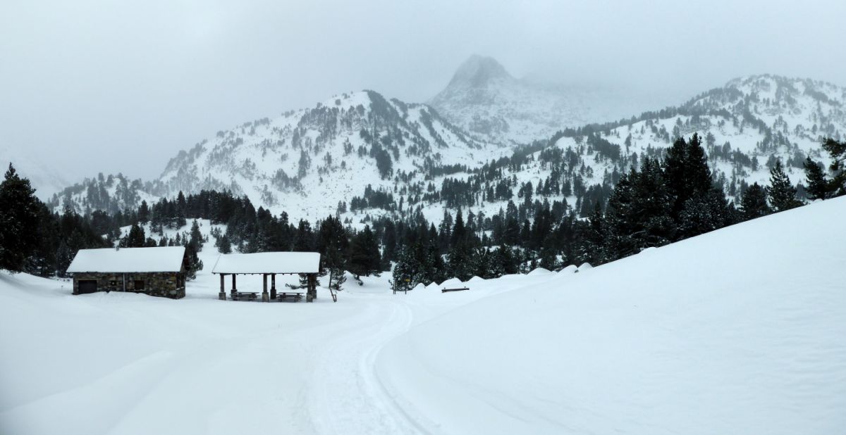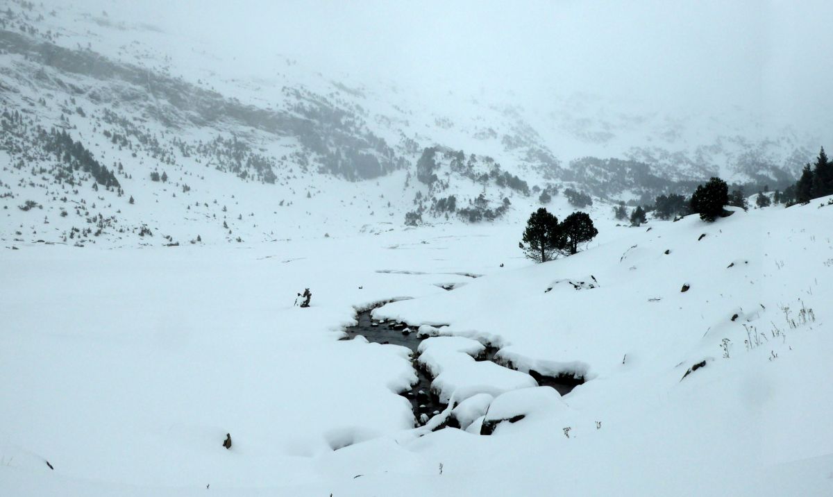 | Vistas al Glaciar de Maladetas, todavía nevando. |