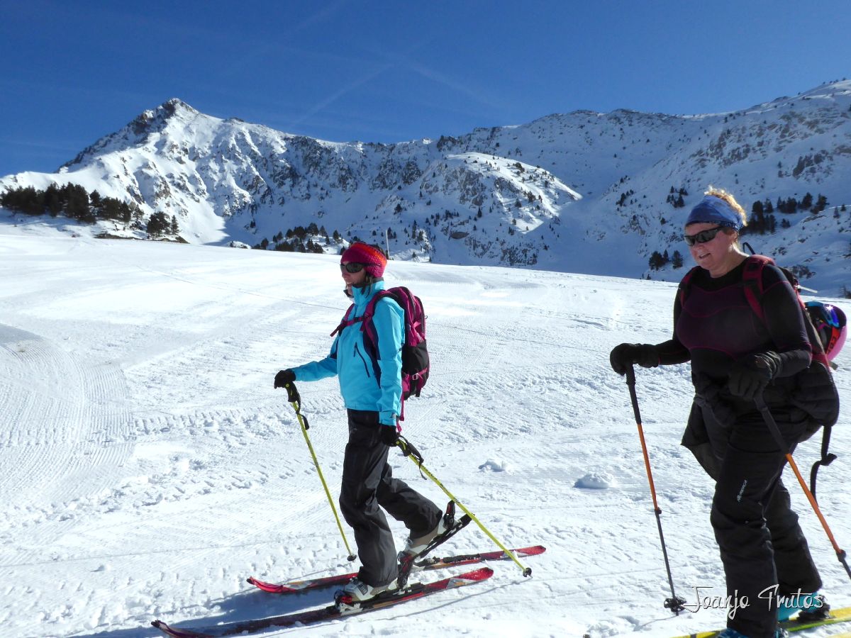 Aparcamos en Orri y para arriba, sensaciones para Laura, ritmo bueno y calidad de nieve excelente, también habíamos encargado sol y no ha fallado.