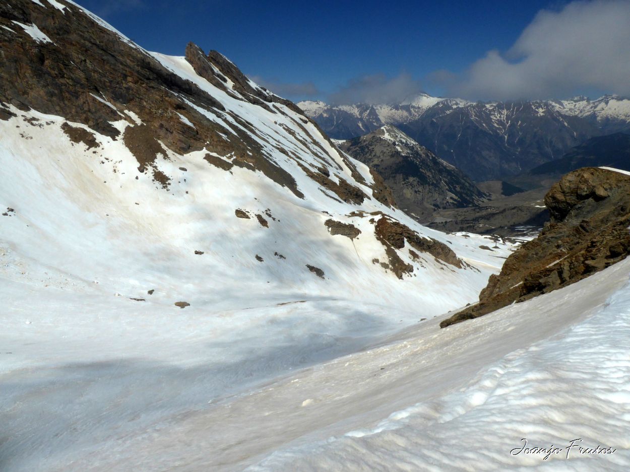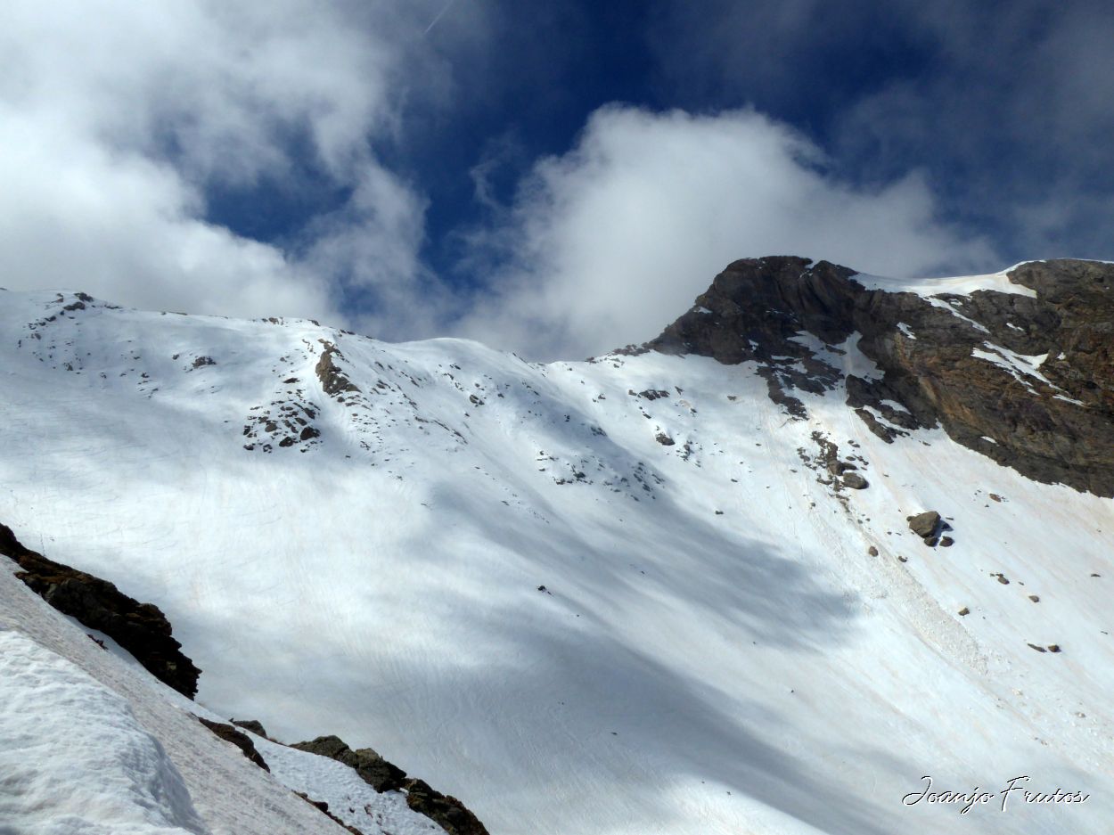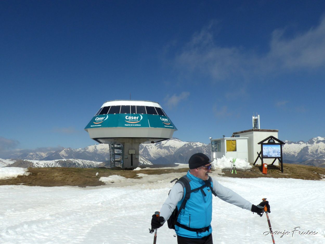 A pesar de empezar a las 11 h. la nieve no transforma, temperatura baja, 3 grados, tiempo disponible menos de 2 horas, solución una vuelta por Basibé, con Ángel, de charleta hasta arriba, se nos hace corto, la bajada nos la tomamos con mucha calma e intentando dar muchos giros para alargar el descenso.