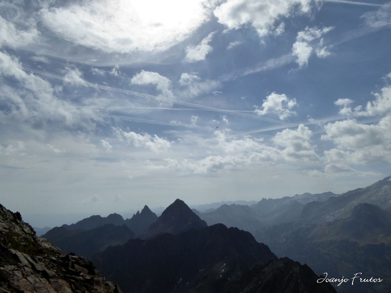 Bonita excursión matinal para evitar la lluvia de la tarde, excursión de salida en la carretera cortada de Llanos del Hospital, aparcamos y empezamos a subir, un poca incómoda la primera parte y luego ya es un sendero más o menos cómodo hasta el ibón de Gorgutes, luego seguimos hasta el Collado de la Glera y luego volvemos sobr nuestros pasos y cogemos el valle donde vemos la pared del Mall Pintrat, antes nos desviamos ligeramente a mano derecha para subir hasta el Pico Sacroux 2.671 m., el último tramo es un poco expuesto en roca, luego se llega fácil a la cima.