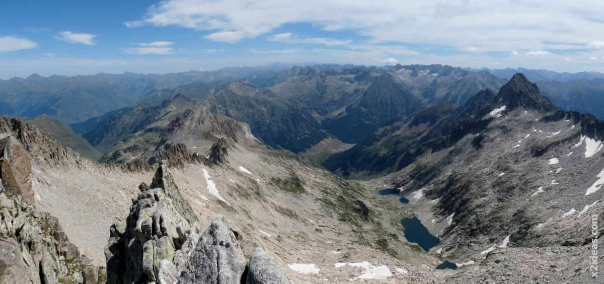| Vistas desde la cima a los Ibones de Mulleres y la entrada sur del túnel de Viella. |