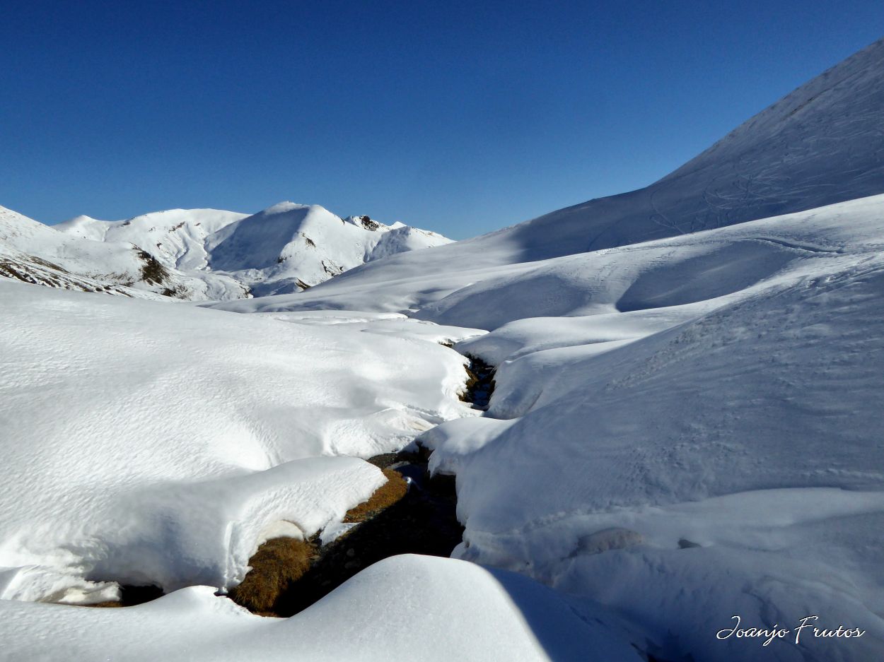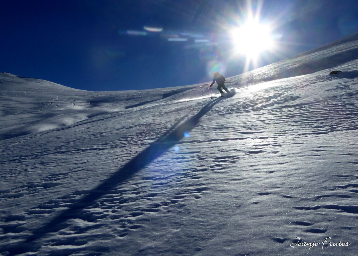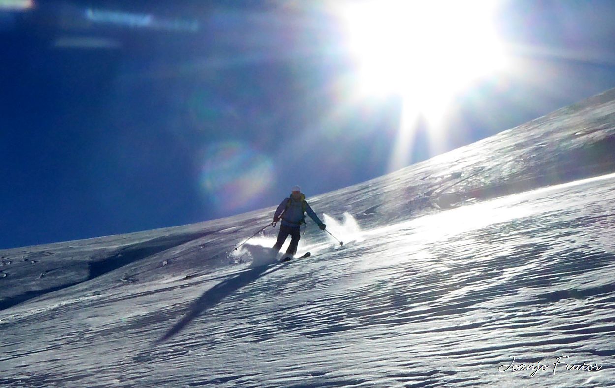 Realizamos subida primera en TS Batiselles, hasta Colladeta para encontrar el sol, que hoy los cañones están fabricando nieve. Las focas salen raudas de la mochila y emprenden la subida por PERDIZ BLANCA, si en mayúsculas, por lo espectacular que está este año. Llegamos a TS Gallinero y nos dirigimos al tubo para hacer pico, fotos y bajada hacia el destino predeterminado, nieve dura y bacheada en este descenso, calentamos piernes y ponemos en práctica los giros con inicio de cuña, jeje, atravesamos un trozo de hierba y empieza la gozada, nieve suelta como si fuera un azucarillo, las focas vuelven a subir, l alínea marcada parece una autopista en cinco minutos arriba, más fotos y a disfrutar del powder, a pesar de que hace más de 20 días de la última nevada.