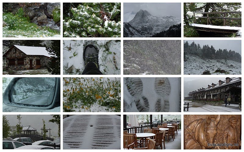 Sorpresa el domingo, levantamos la persiana y vemos pasar nieve, la nortada es destacada, decidimos subir a Llanos del Hospital y posteriormente a La Besurta.