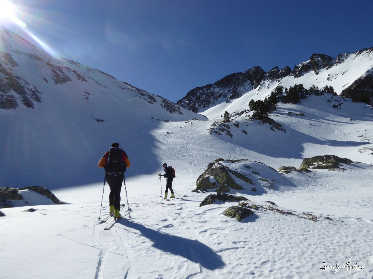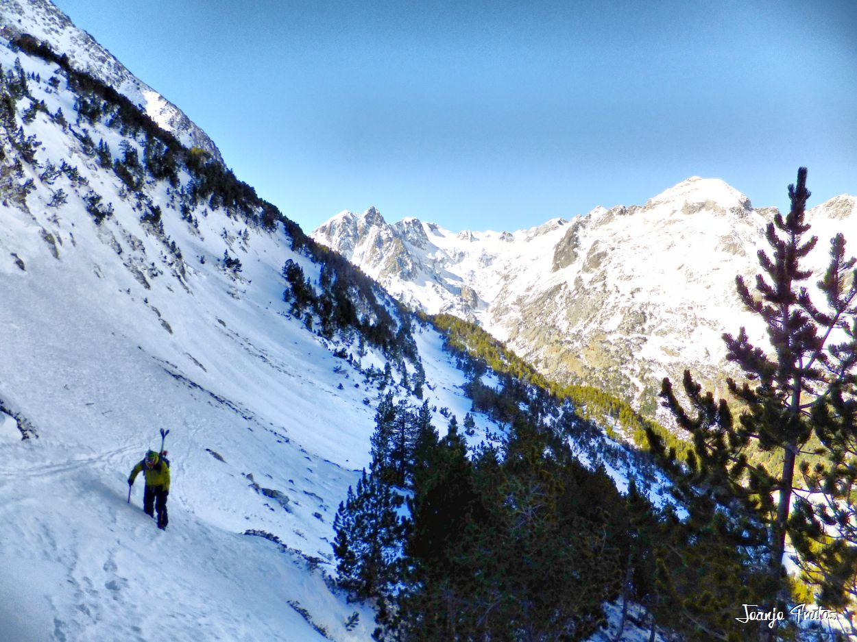 Salida de travesía con dos buenos amigos, Narciso y Daniel «El Travieso», hemos ido modificando planes desde el propio café, para al final perdernos, jajaja, por el bosque de Paderna y explorar un lugar donde no habíamos estado. El día ha sido espectacular, la nieve, la que hay de todo un poco, subida para gente menos miedosa que yo, pero todo se salva con crampones, bajada de las que se saborean al llegar y lo mejor el ratoneo por el bosque y las cervezas de Llanos del Hospital.