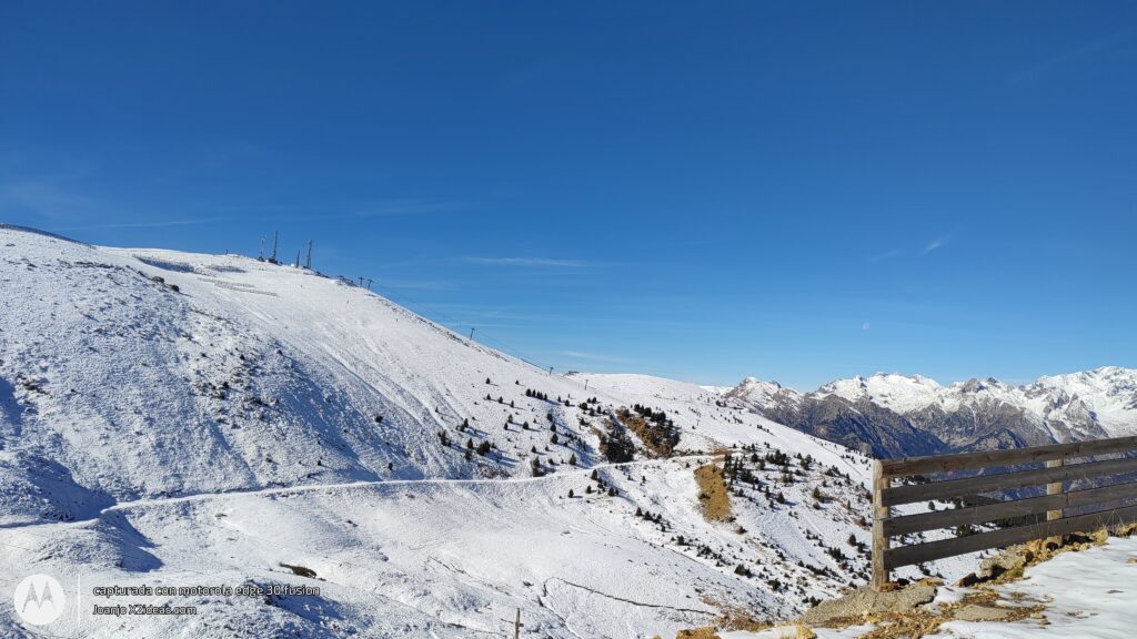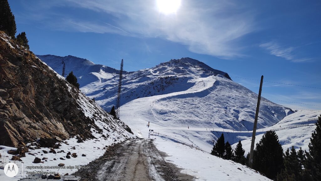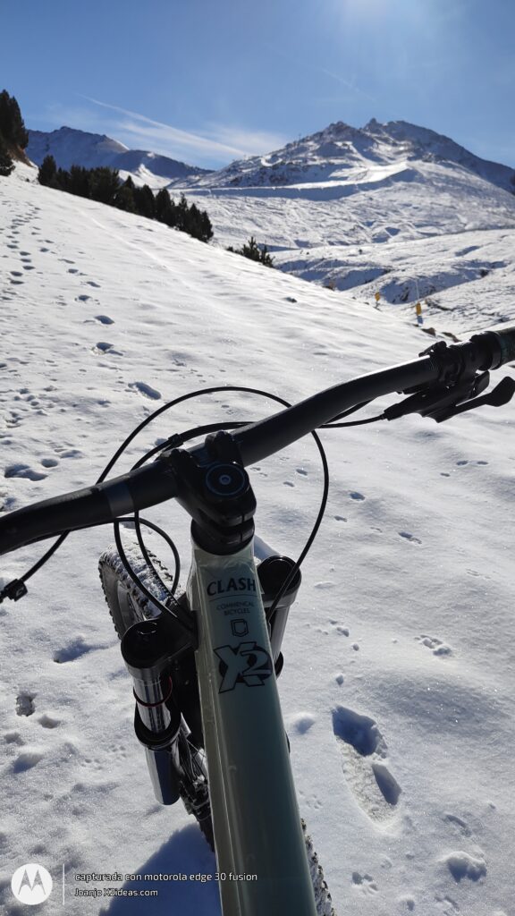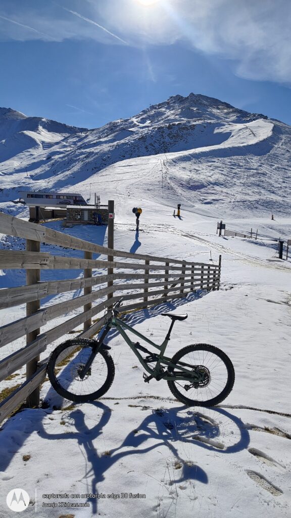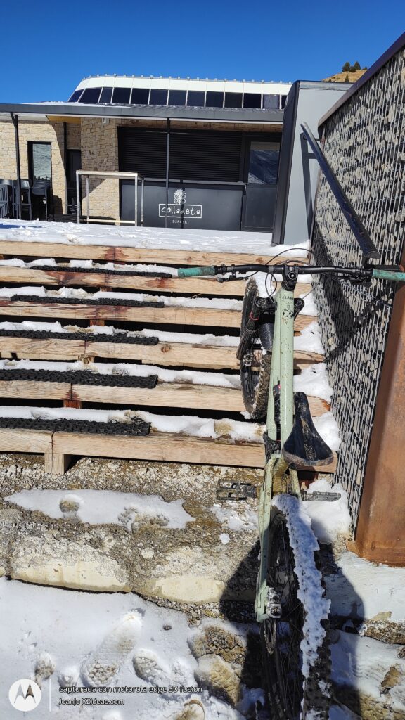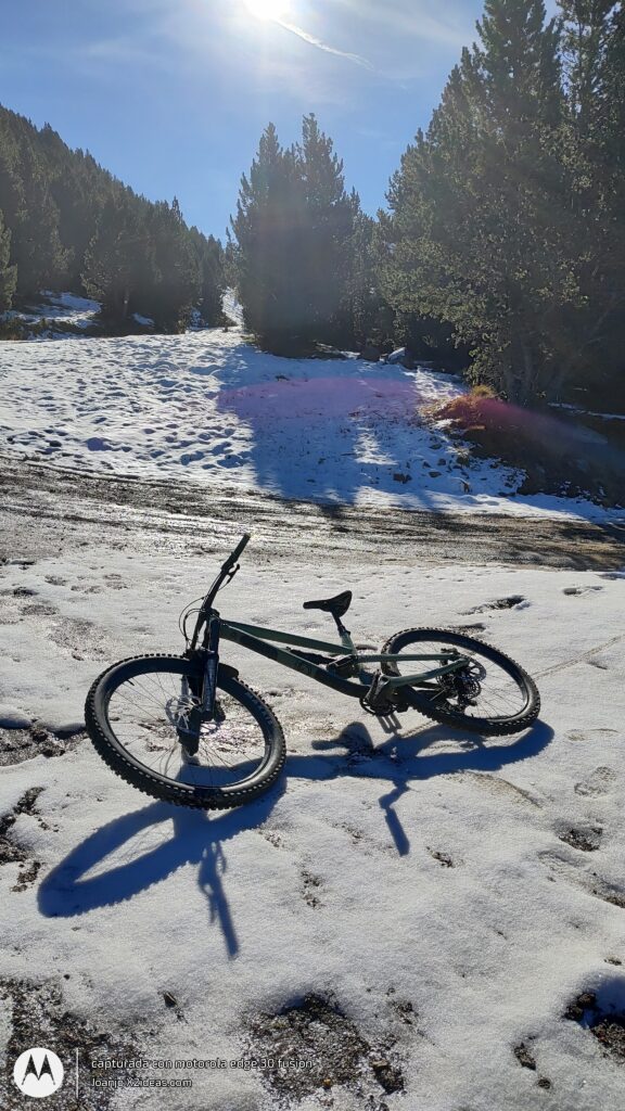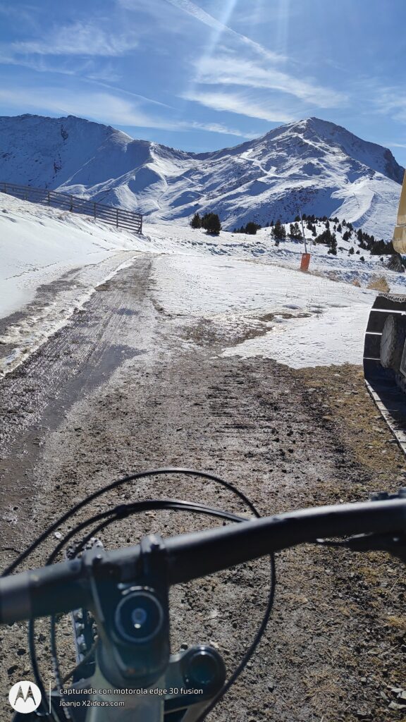 Después de la fotos, la bajada, intensa y divertida, sustitos con las placas de hielo, espectacular grip al coger el sendero de la BlueVelvet, como digo yo, «Al Warro».