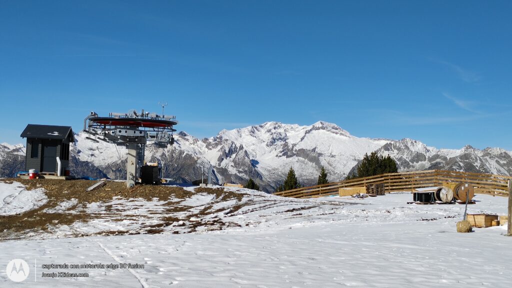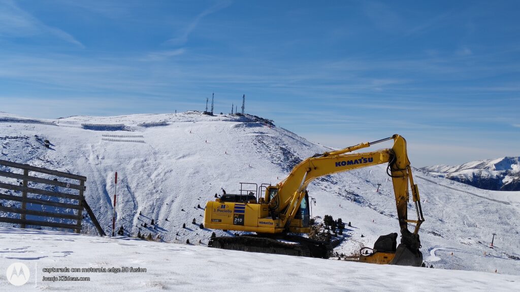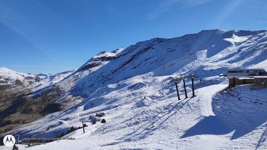Hoy tocaba ciclar un rato y aprovechamos a pisar nieve y ver los avances del Telesilla de 4pax de Sarrau, las sillas aún en el parking de Molino, pero ya se ha lanzado el cable.