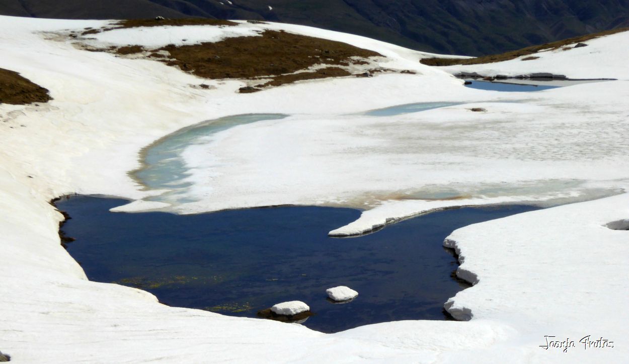 | Rebasamos el ibón y seguimos bajando en diagonal, sin perder mucha altura. |