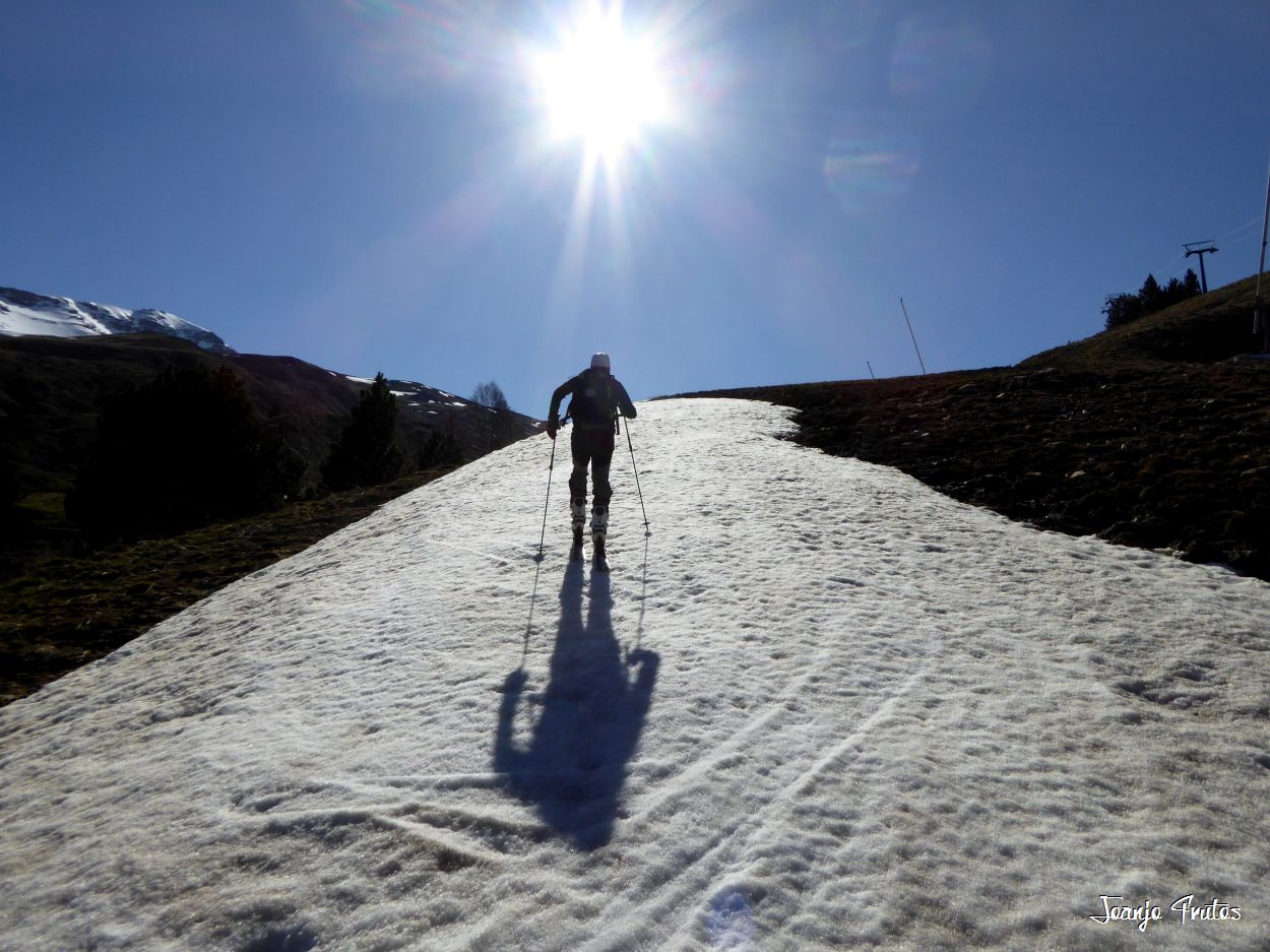 | El collado se empina y decidimos subir a pata, las focas se nos separan de los esquís por la humedad de la nieve y dejan de ser seguras. |