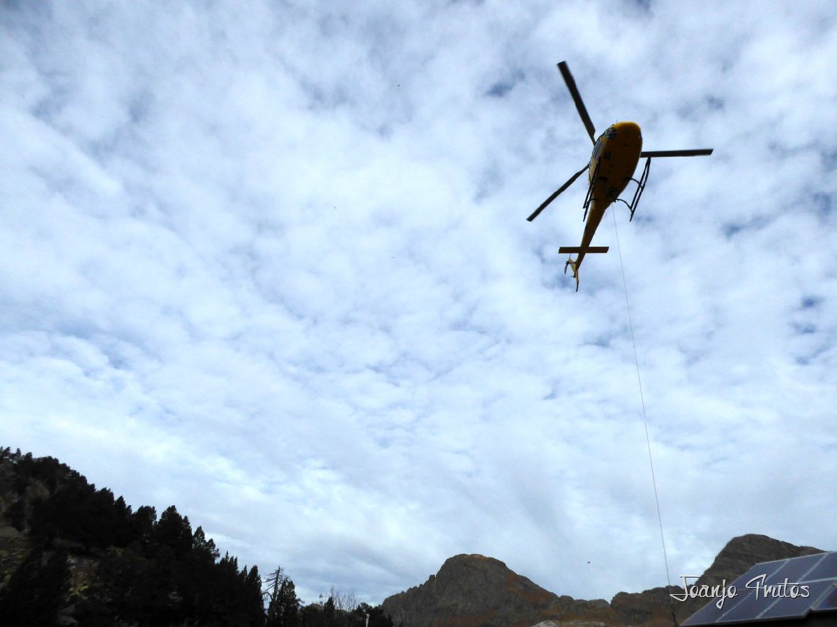 Aprovechando que era día de carga para el Refugio de La Renclusa hacemos fotos y les ayudamos a cargar y descargar alimentos para poder atendernos en nuestras próximas visitas cuando ya calcemos los esquís, de momento en la parte del glaciar han caído de 20 a 30 cms de nieve nueve, otra vez se ve blanco.