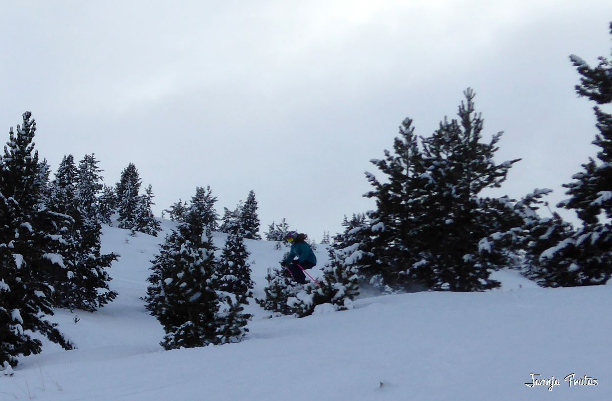 Estos días donde tenemos una base dura y unos centímetros de nieve polvo muy seca, los pocos que estamos, estamos disfrutando de todos los tubos y árboles de la estación …